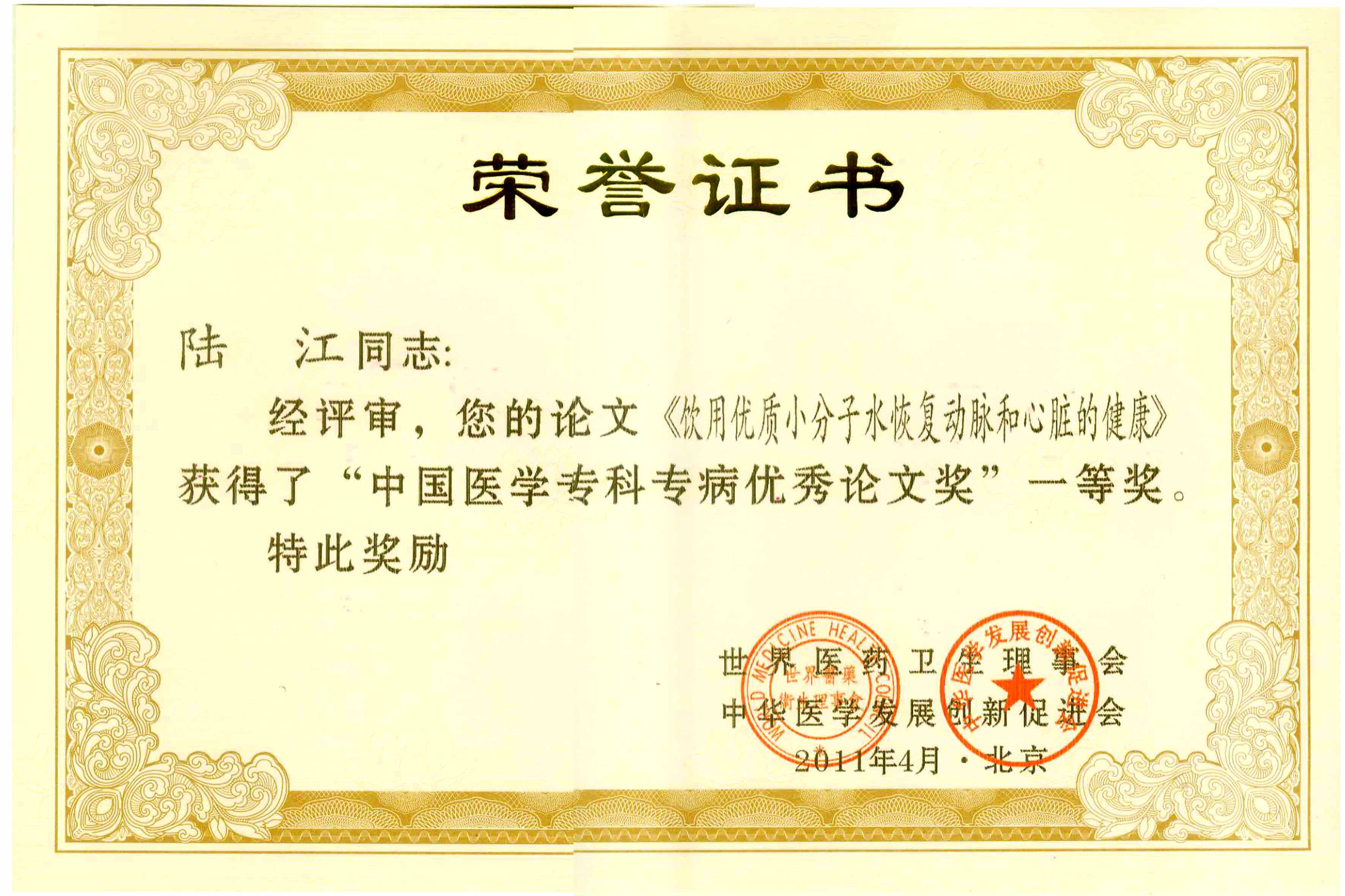 人類幾千年來患以上病癥需終生服藥,幾十年也不能治愈。可是我國南寧的高級工程師陸 江,于1990年想根治高血壓,研究發(fā)明了離子水瓶,處理出微小分子團水供飲用,經(jīng)過醫(yī)院臨床試用和專家鑒定,1999年獲中國發(fā)明專利權(quán),產(chǎn)品于2000年投放市場后一直跟蹤調(diào)查,據(jù)全國各地用戶反饋:祛除了高低血壓、糖尿病和冠心病,并使前列腺增生、咽喉炎、鼻竇炎、慢性氣管炎、支氣管炎、矽肺病、哮喘、慢性胃炎、腸炎、慢性膽囊炎、慢性腎炎、腎衰、膀胱炎、便秘、痔瘡、風(fēng)濕性關(guān)節(jié)炎和濕疹皮炎及中風(fēng)后遺癥等病癥不藥而愈。為什么喝微小水能治20多種病?陸 江從1991年德國科學(xué)家發(fā)現(xiàn)細胞膜水通道僅為2納米獲得啟發(fā),認為多種器官患病是因細胞脫水,不能正常代謝和分裂增殖,才使器官細胞減少致衰弱萎縮而形成細胞缺水性病癥。22年來的實踐有力地支持了“細胞脫水致病”這一重要論點,表明喝微小水可滿足細胞的生理需求,補水就能祛病,是生命科學(xué)新亮點。